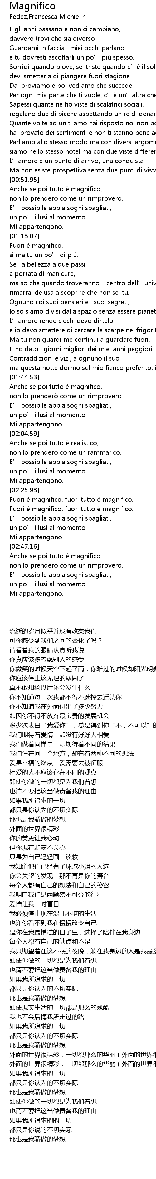 | [02:47.50] | Anche se poi tutto e magnifico, |