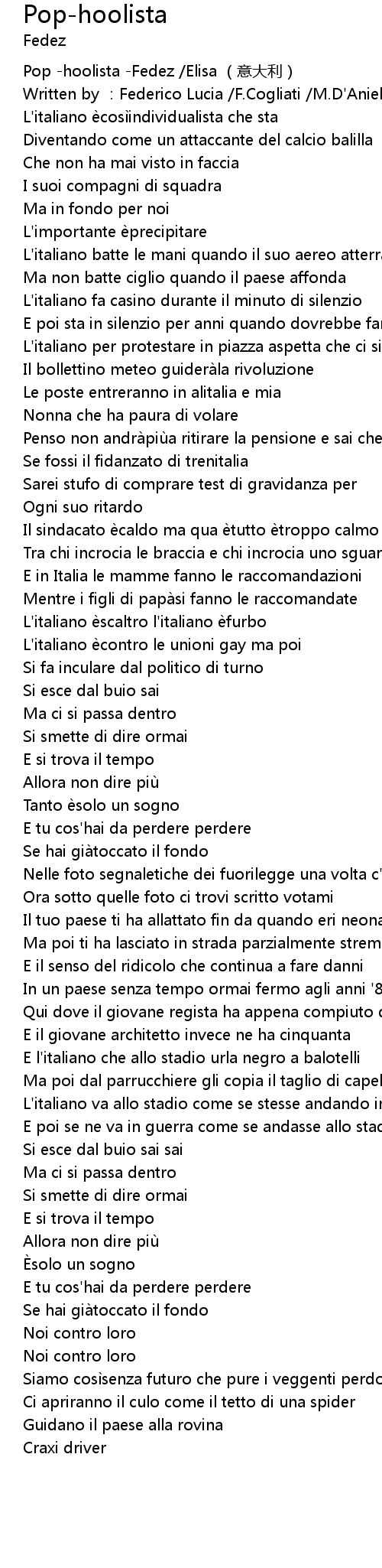 | [00:00.00] | Pop hoolista Fedez Elisa yì dà lì |
