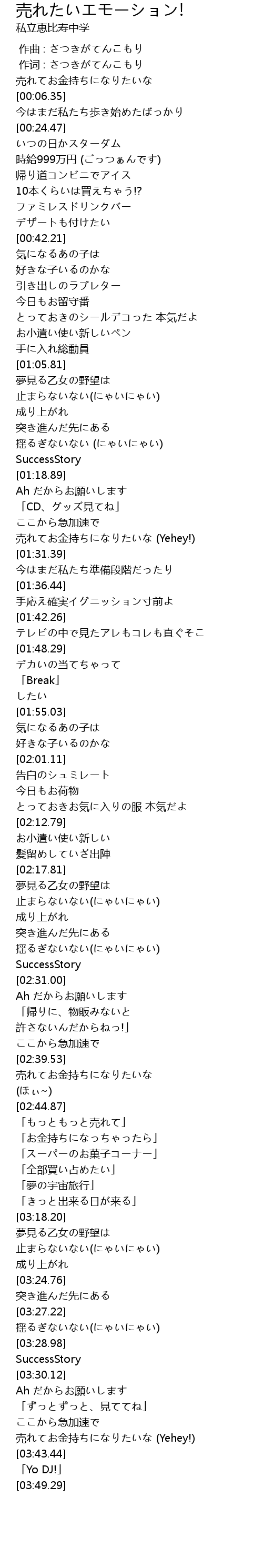 | [03:40.03] | 売れてお金持ちになりたいな (Yehey!) |