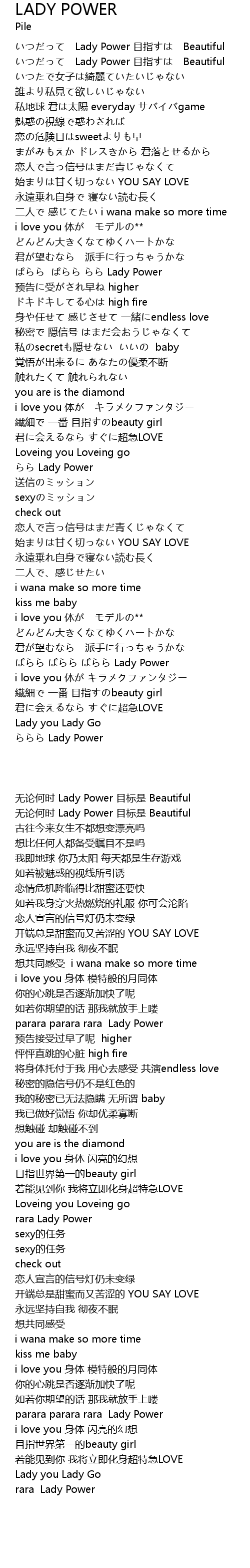 | [03:15.48] | ぱらら ぱらら ぱらら Lady Power |