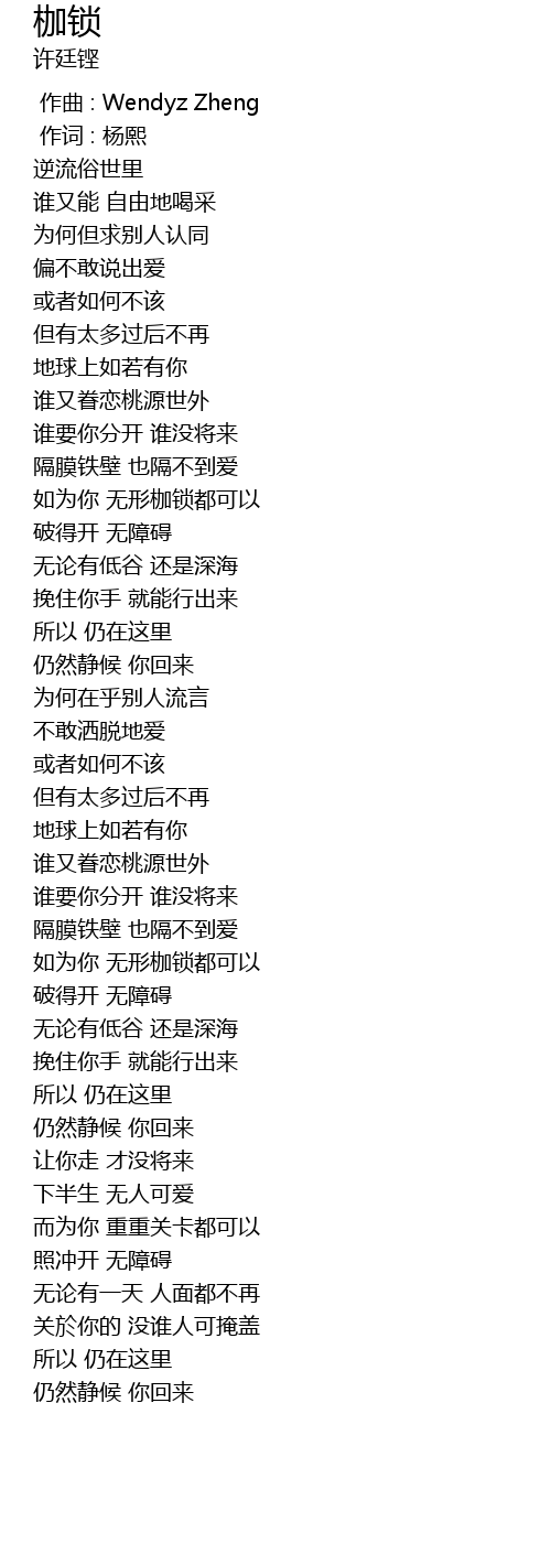 | [00:00.00] | zuo qu : Wendyz Zheng |