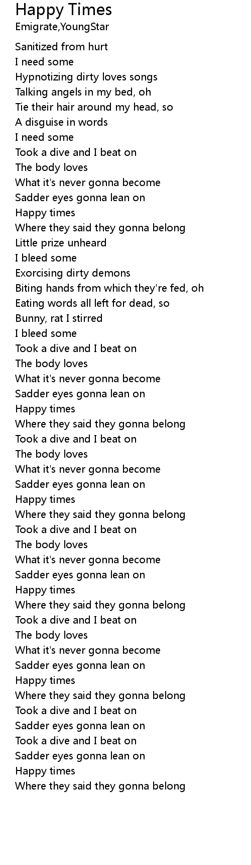 | [02:43] | Sadder eyes gonna lean on |