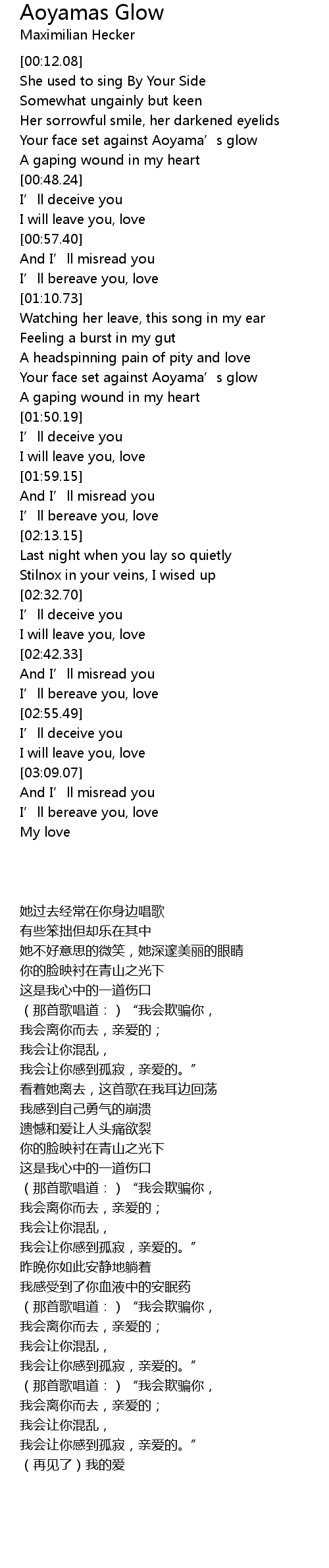 | [00:33.66] | Your face set against Aoyama’s glow |