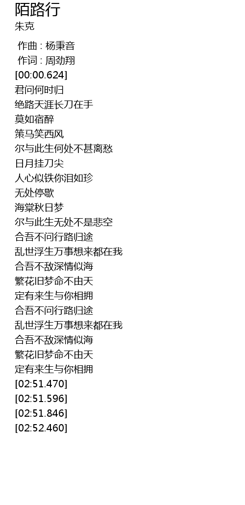 | [02:04.884] | hé wú bù wèn xíng lù guī tú |