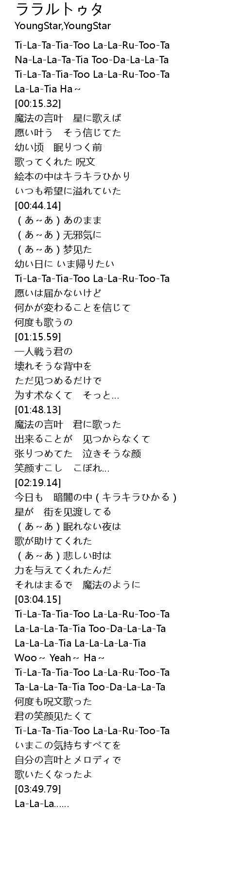 | [03:20.21] | Ti-La-Ta-Tia-Too La-La-Ru-Too-Ta |