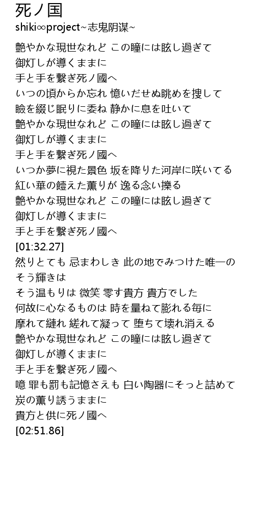 | [02:31.97] | 手と手を繋ぎ死ノ國へ |