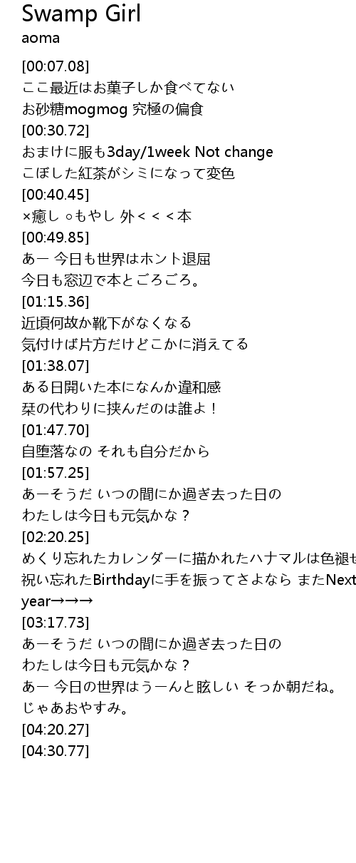| [00:31.05] | おまけに服も3day/1week Not change |