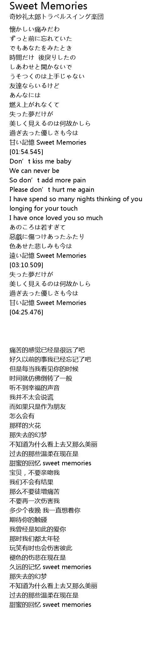 | [01:40.643] | 甘い記憶 Sweet Memories |
