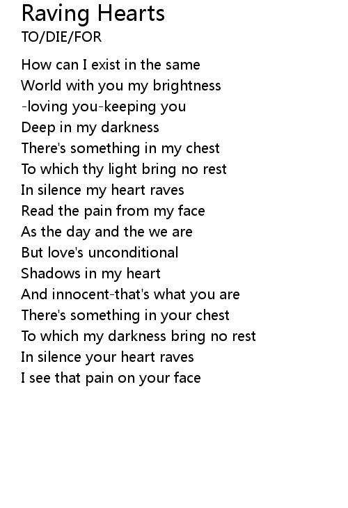 | In silence my heart raves | |