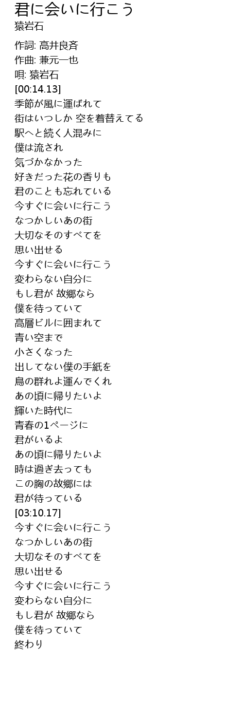 | [03:38.79] | 今すぐに会いに行こう |