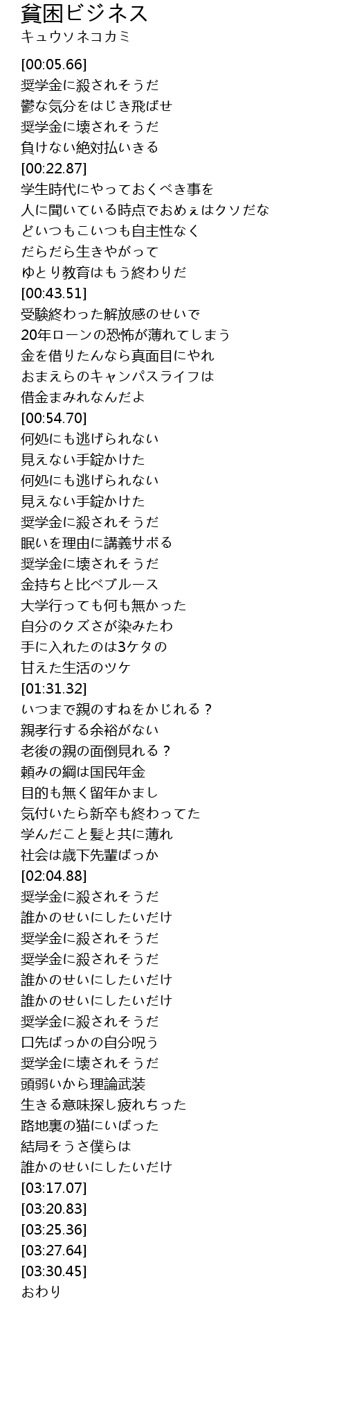 | [02:45.92] | 奨学金に殺されそうだ |