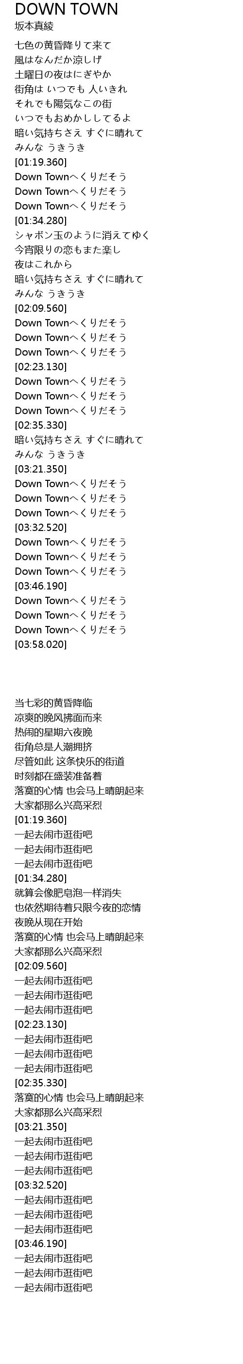 | [03:35.420] | Down Town |
