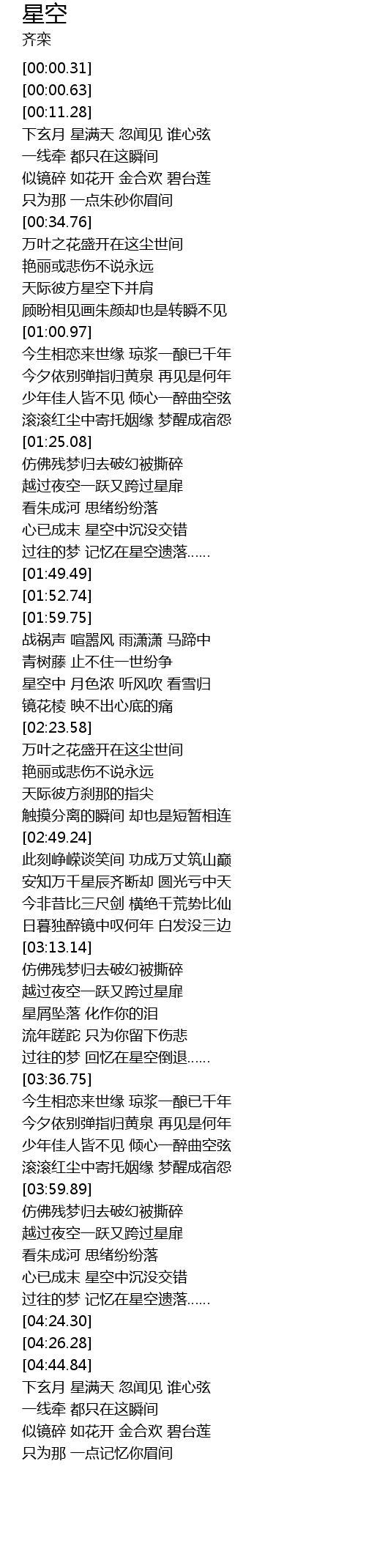 | [04:46.99] | 下玄月 星满天 忽闻见 谁心弦 |