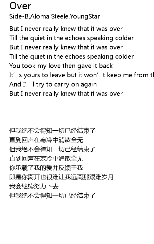 | [00:46.84] | But I never really knew that it was over |