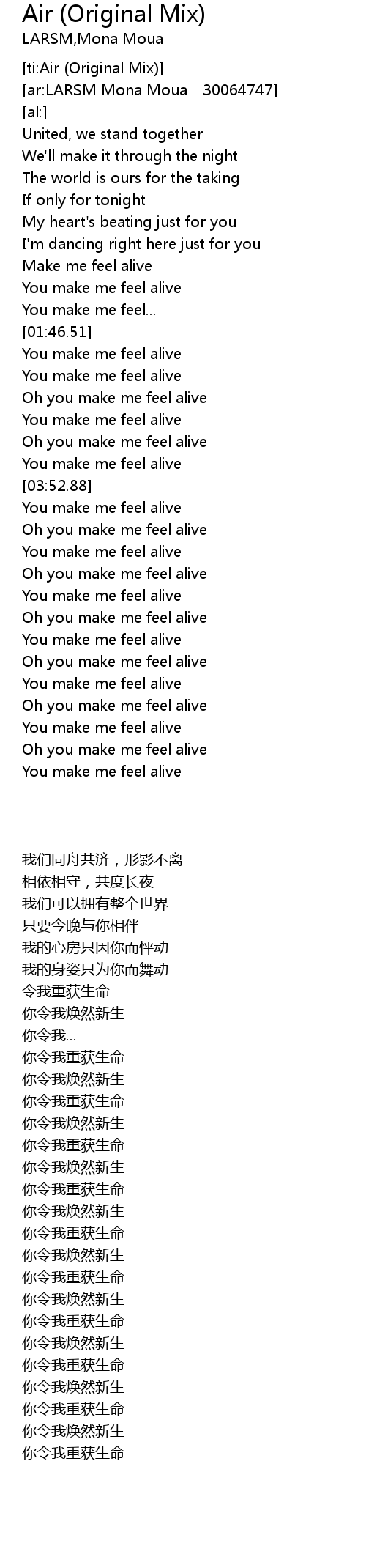 | [03:48.70] | You make me feel alive |