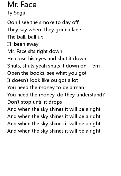| Mr. Face sits right down | |