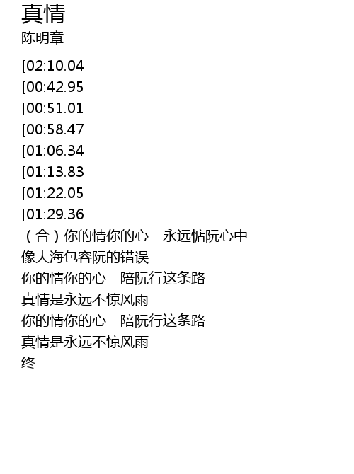 | [03:03.74][01:29.36] | 真情是永远不惊风雨 |