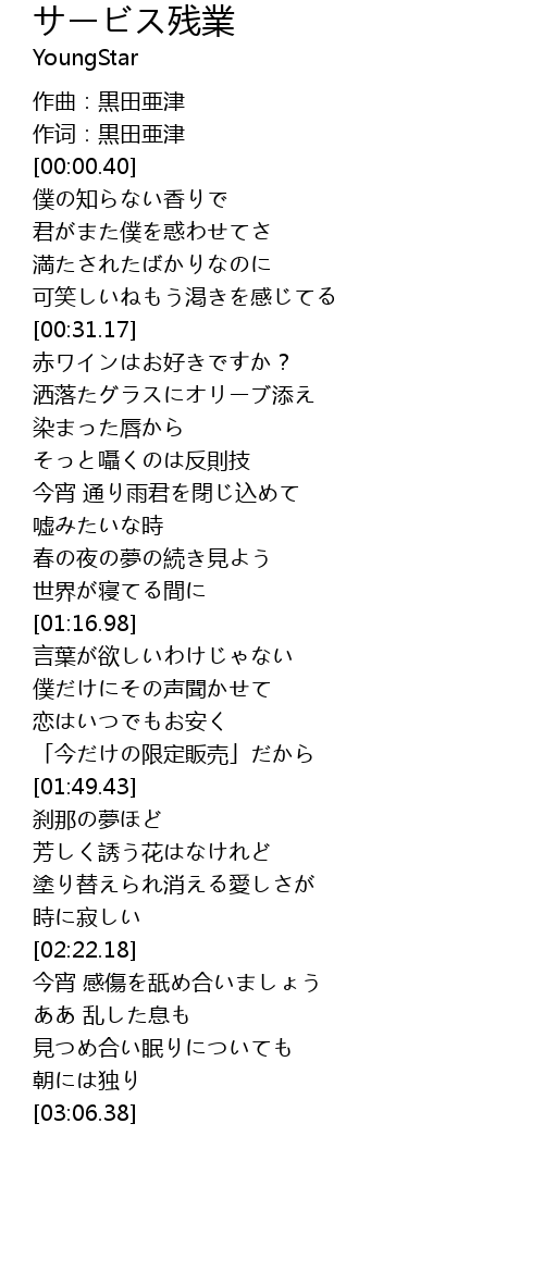 | [02:36.27] | 今宵 感傷を舐め合いましょう |