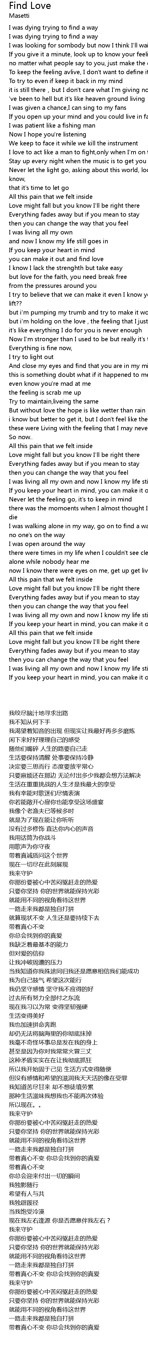 | [02:20.95] | there were times in my life when I couldn't see clearly that I was alone while nobody hear me |