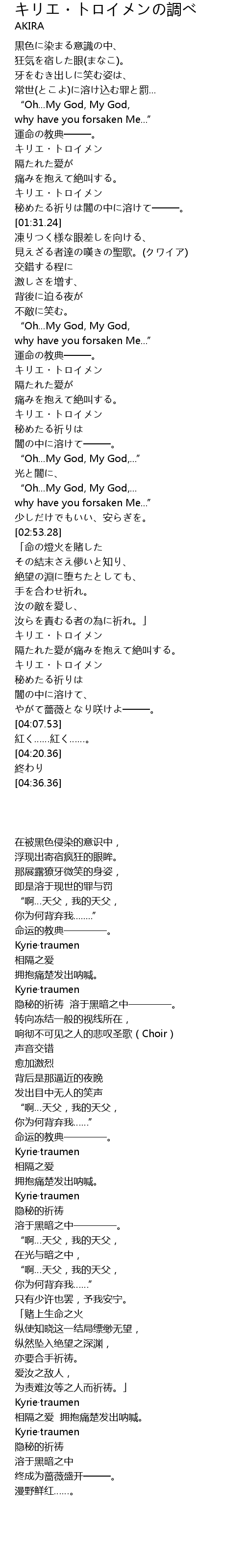 | [01:43.05] | 見えざる者達の嘆きの聖歌。(クワイア) |