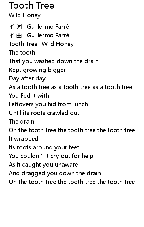 | [01:44.451] | Oh the tooth tree the tooth tree the tooth tree |