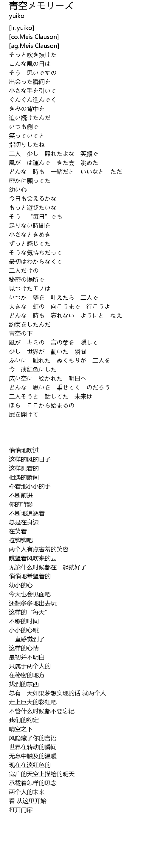 | [02:15.33] | 青空の下 |