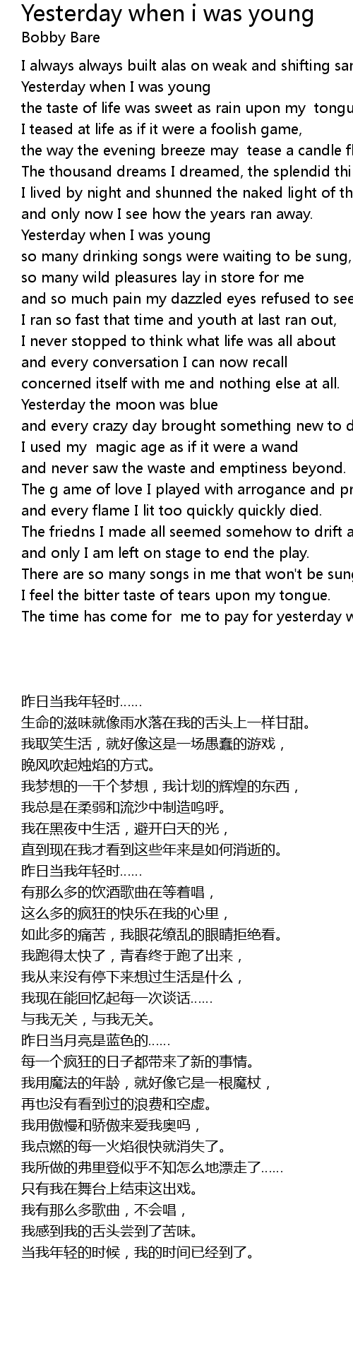 Yesterday when I was young |