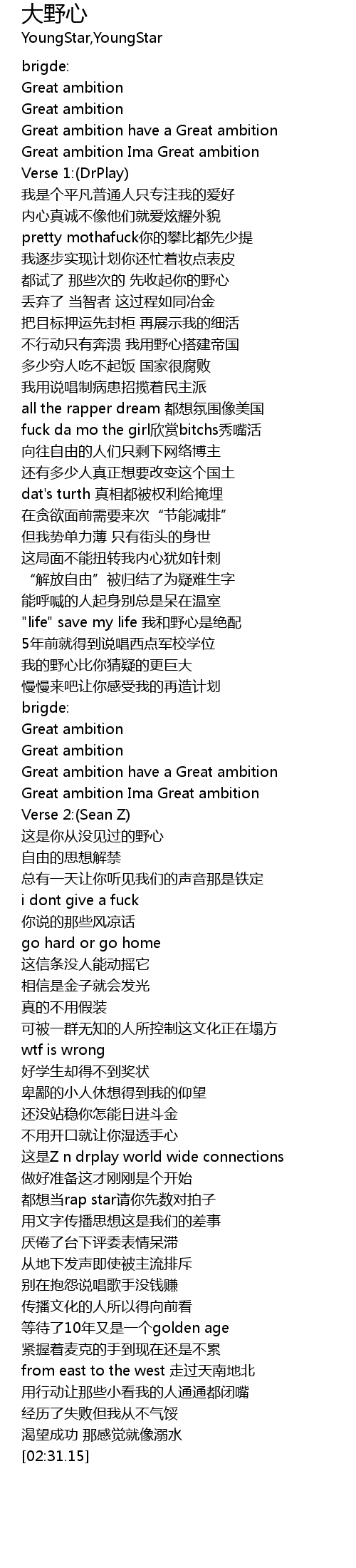 | [01:14.93] | 我的野心比你猜疑的更巨大 |