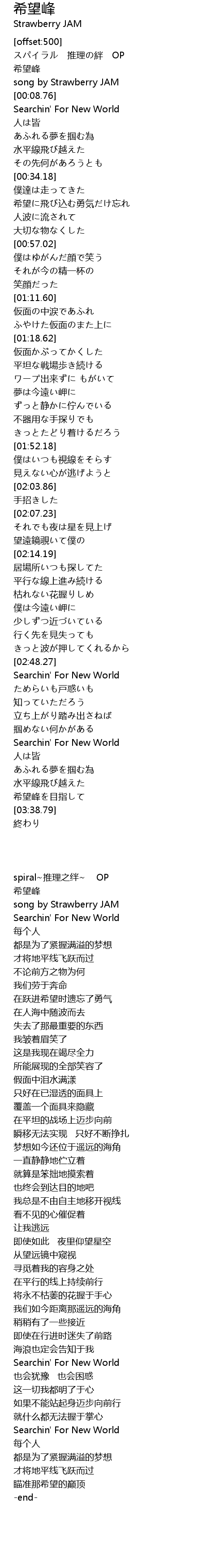 | [03:34.05] | 希望峰を目指して |