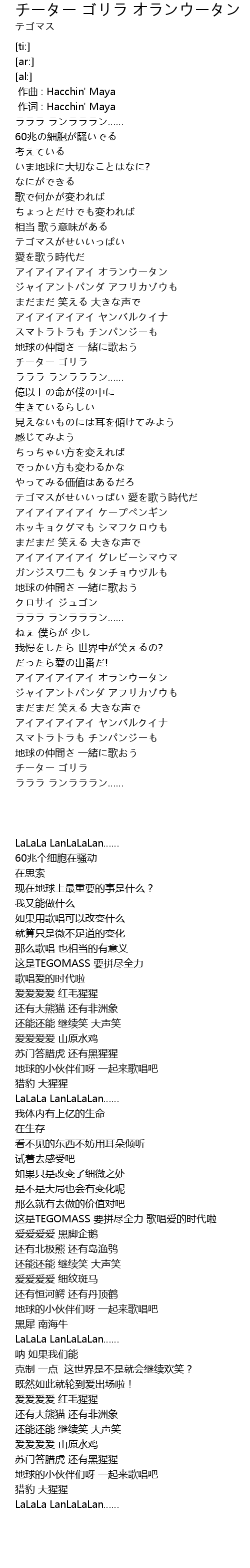 | [00:52.69] | アイアイアイアイ オランウータン |