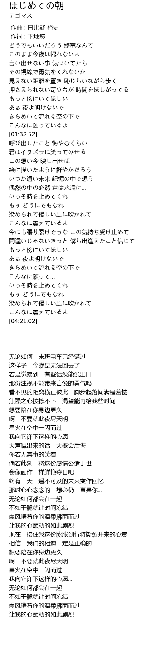 | [00:00.00] | 作曲 : 日比野 裕史 |