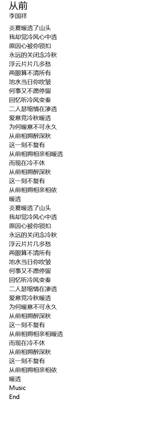 | [01:36.430] | cóng qián xiāng yōng zuì shēn qiū |