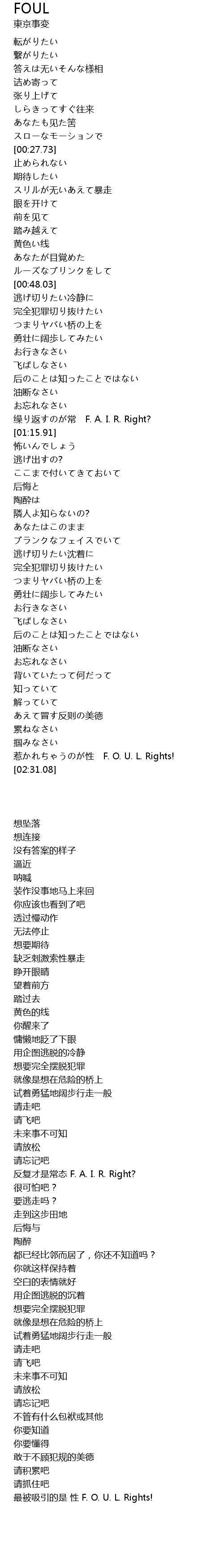 | [02:23.08] | 惹かれちゃうのが性 F. O. U. L. Rights! |