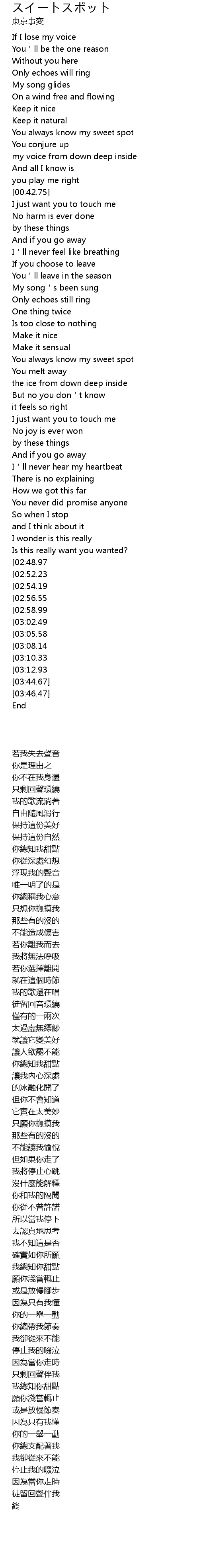 | [03:16.37][02:48.97] | I always know your sweet spot |