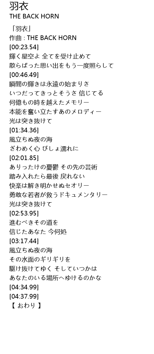 | [00:11.54] | 作曲∶THE BACK HORN |
