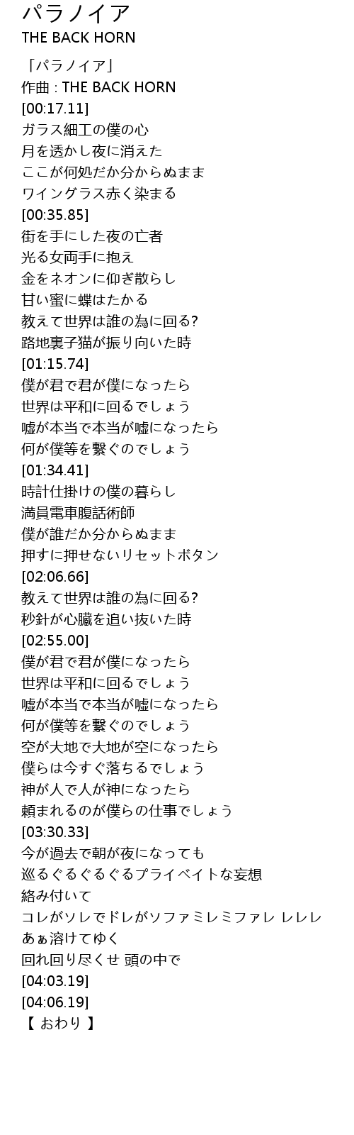 | [00:01.11] | 「パラノイア」 |