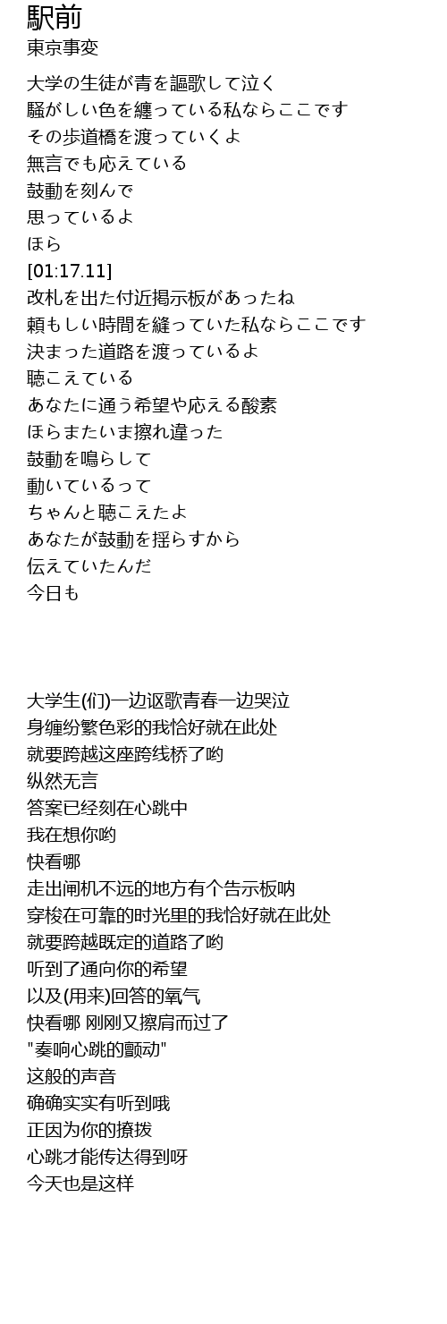 | [01:21.33] | 改札を出た付近掲示板があったね |