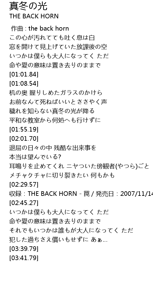 | [00:00.00] | 作曲 : the back horn |