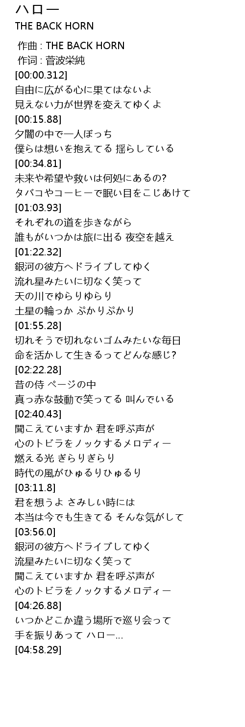 | [04:39.4] | 手を振りあって ハロー… |
