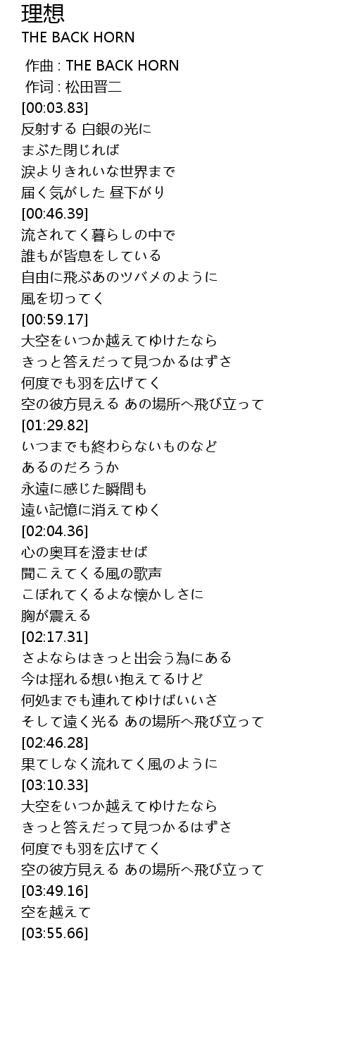 | [00:00.00] | 作曲 : THE BACK HORN |