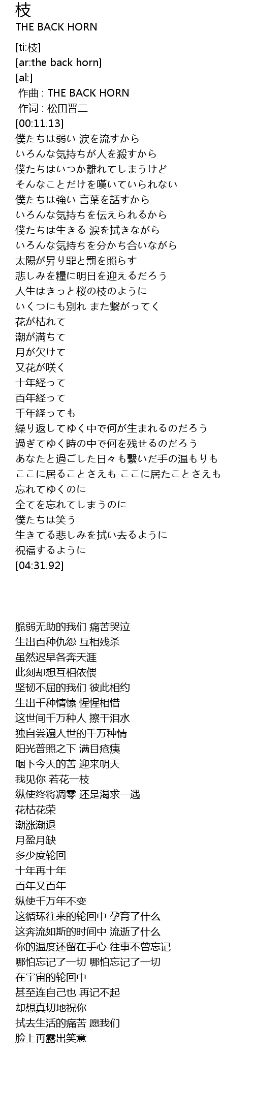 | [00:00.00] | 作曲 : THE BACK HORN |