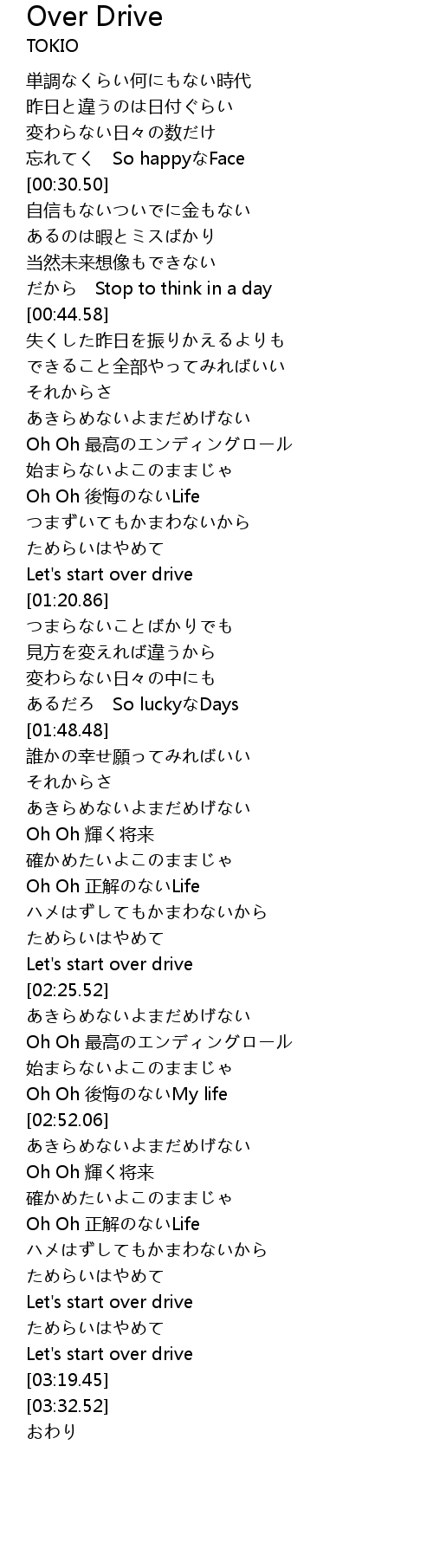 | [03:14.80] | Let's start over drive |