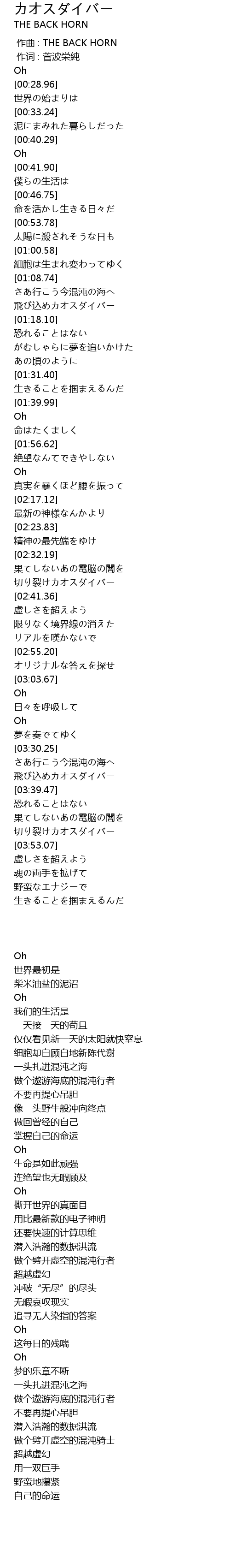 | [03:35.75] | 飛び込めカオスダイバー |