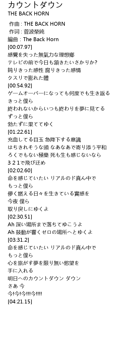 | [00:05.88] | 編曲:The Back Horn |