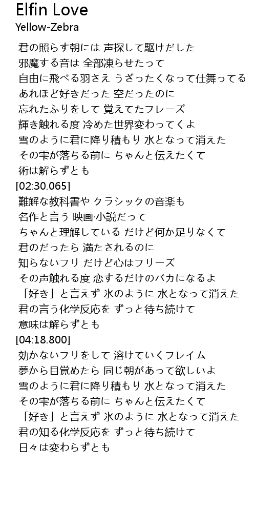 | [03:50.849] | 「好き」と言えず 氷のように 水となって消えた |