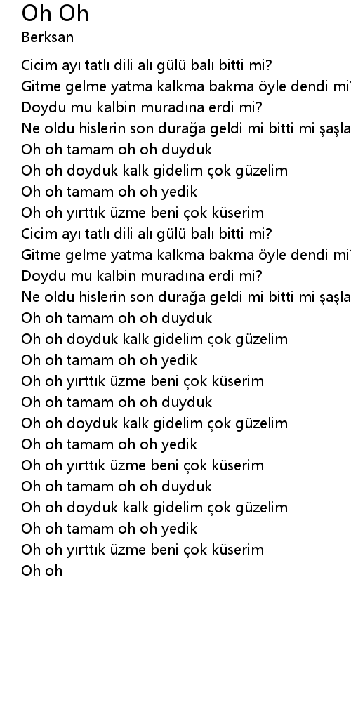 | Oh oh doyduk kalk gidelim ok gü zelim | |