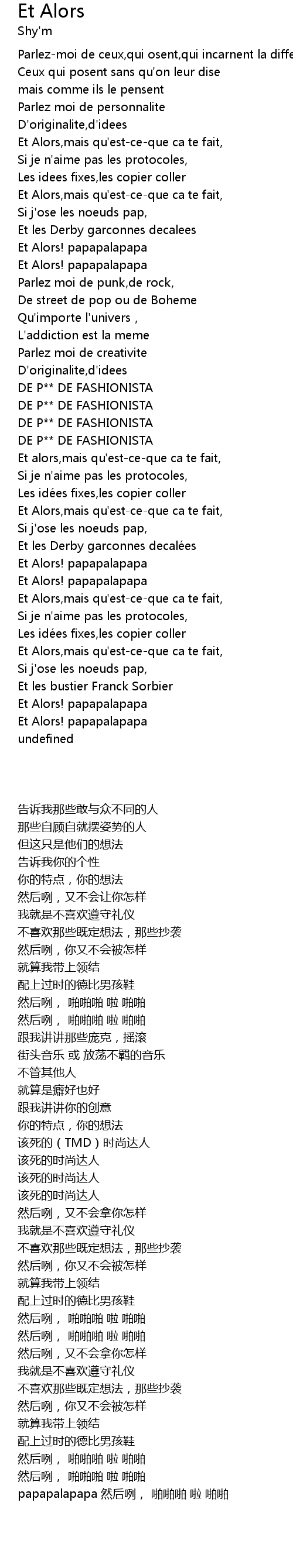 | [02:22.83] | Et Alors, mais qu' estceque ca te fait, |