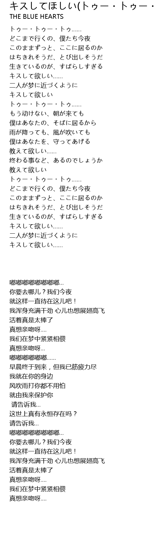 キスしてほしい(トゥー・トゥー・トゥー)