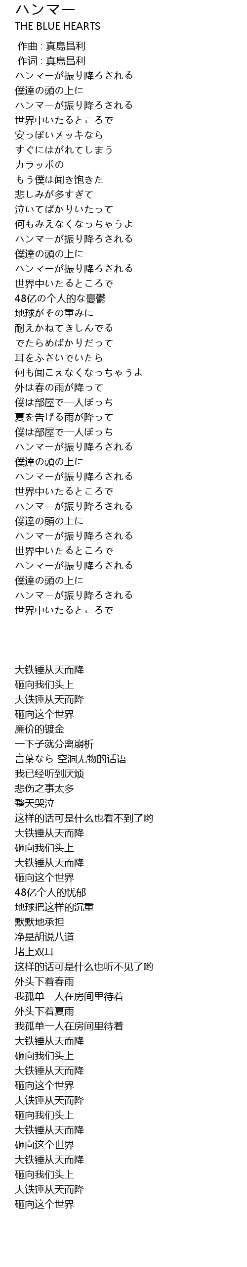 | [00:00.00] | 作曲 : 真島昌利 |