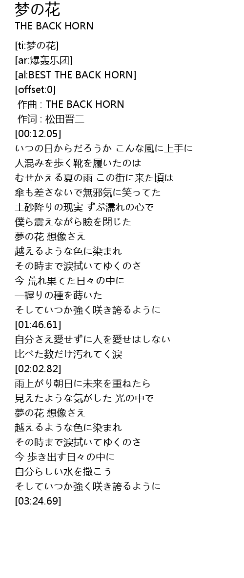 | [00:00.00] | 作曲 : THE BACK HORN |
